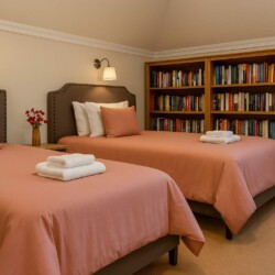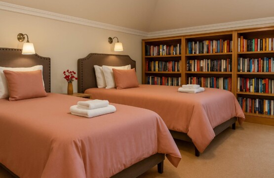 The fifth bedroom is tailored for any book lovers in your group. With two full (double) sized beds, individual reading lamps, and a whole bookshelf wall, you can drift off to sleep with a great book in hand.