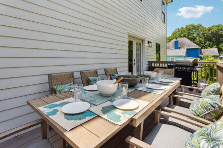 Of course, if you don’t feel like cooking while on vacay, you’re just a short drive from all of the Decatur best restaurants. You can enjoy your meals at the large kitchen island (seating for four), the dining table (seating for 12), or the outdoor dining table (seating for 8).
