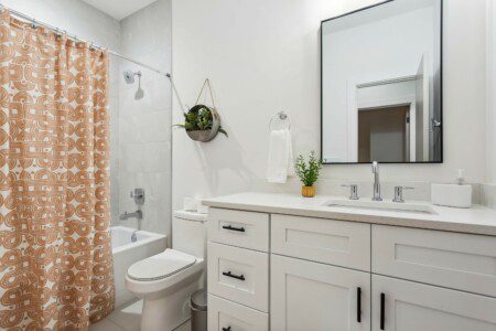 BATHROOM 3 is down the hall from Bedroom 6. It has a tub/shower combo and a large vanity. This bathroom on this level is easily accessible from the living, dining and kitchen areas, so it is definitely going to be the busiest bathroom in the house.