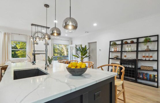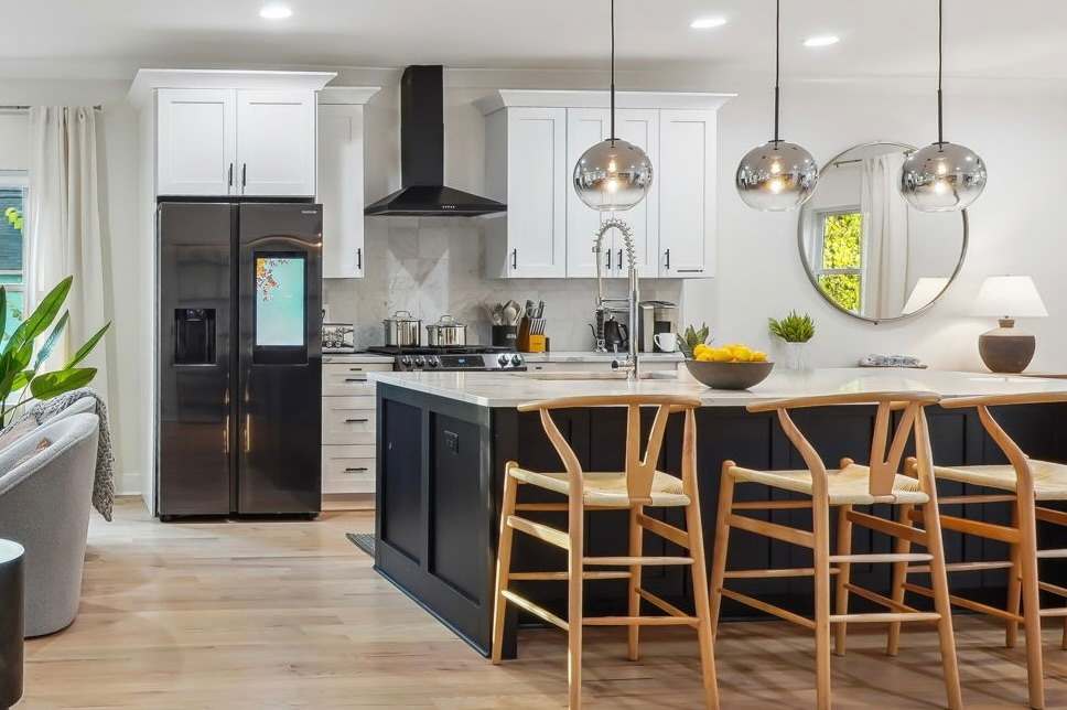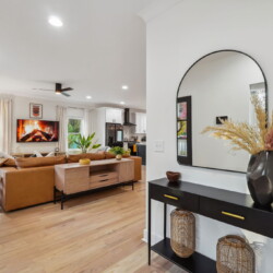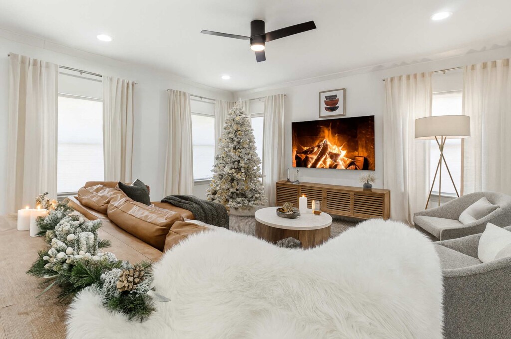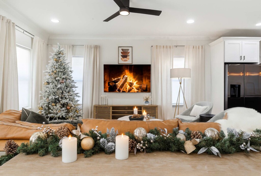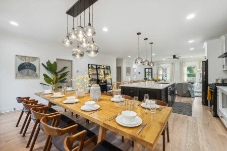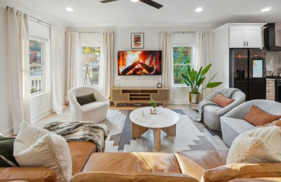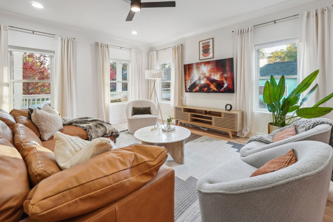 The comfortable living room provides a relaxing atmosphere for you to kick back and get into full vacation mode. Whether you’re streaming your favourite shows on the Smart TV, planning for another exciting day around Atlanta, or simply enjoying the views from the large windows, this bright and airy room is perfect for chilling out. The Roku TV (like all others in the house) is set up with complimentary streaming channels (including Netflix and Disney+) so you’ll never be short of great things to watch!