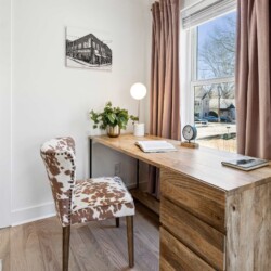 A comfy queen-sized bed, a wall-mounted 55″ Smart TV, and a desk for any digital nomads in the group.