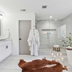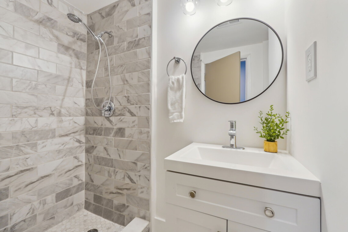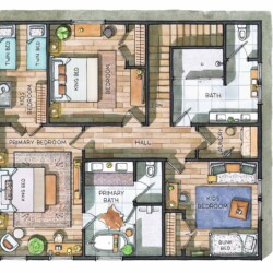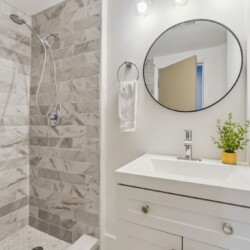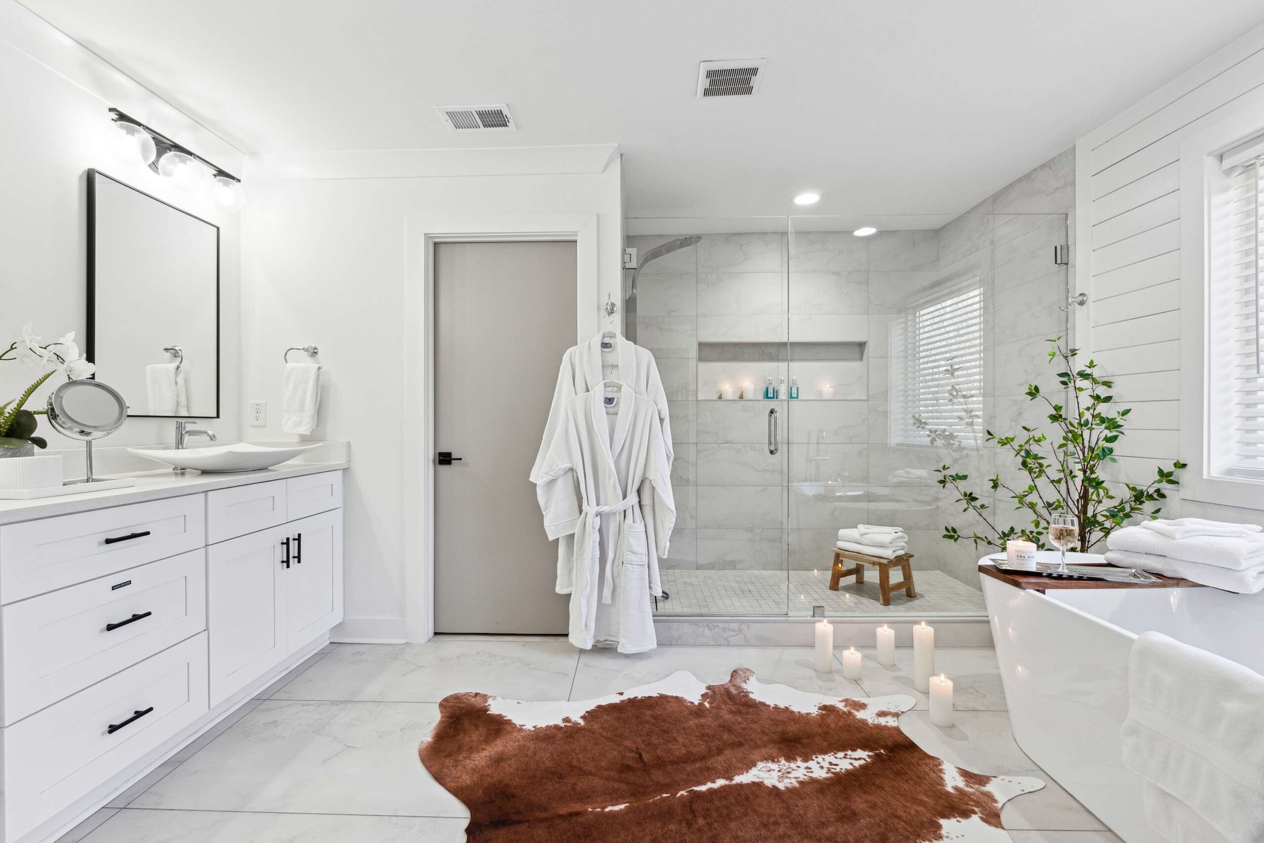 The luxurious full Bathroom with a double vanity and a walk in shower is down the hall from Bedroom 3 and Bedroom 4.