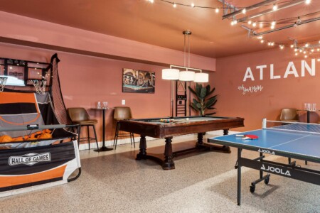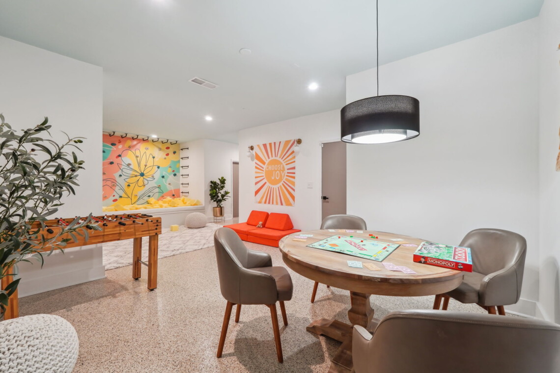 Coming for the World Cup with family or a big group? Our brand-new home is just a 25-minute drive to the Mercedes-Benz Stadium and a 10-minute drive to Decatur Fan Zone. It makes the perfect home base for fans. It is close enough for easy access, yet far enough to escape the city’s chaos. After the excitement return to a quiet, family-friendly home with plenty of parking and a lot of room to unwind. Kids get their own playroom paradise—complete with a climbing wall, foam pit, and monkey bars. Teens and adults can take over the full game room, designed for entertainment long after the matches end. And with TVs in every bedroom, your group won’t miss a single goal.