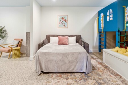 BASEMENT PLAY ROOM has a queen size sofa-sleeper.
