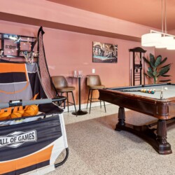 Guests will have private access to the entire home, including the two game rooms and the fully fenced backyard. Personal care appliances are available including hairdryers in every bathroom. The full laundry room boasts an iron and ironing board, a steamer, a washer, and a dryer. We provide guests with laundry detergent, dishwashing soap, toilet paper, and paper towels. We offer 6 Roku TVs with many complimentary streaming channels like Netflix and Disney+.